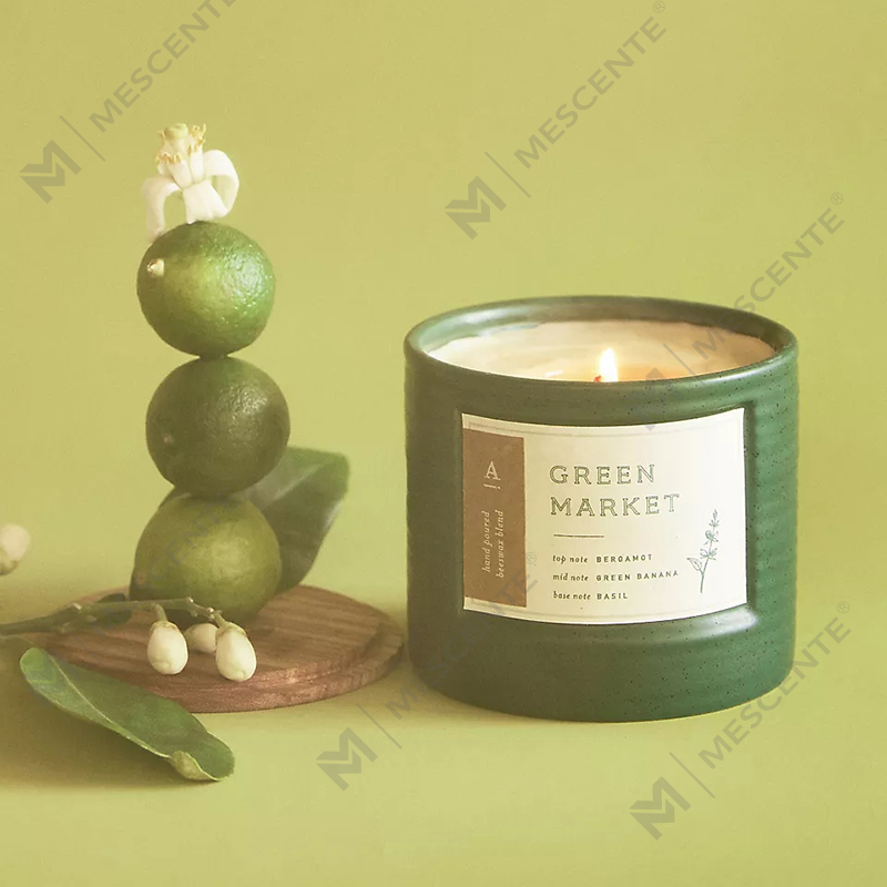 Bougies M&Scent en céramique colorée de marque privée, parfumées à la cire de soja chic